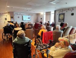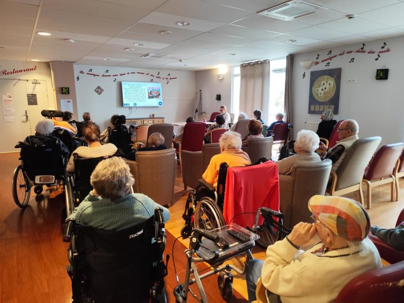 Nous jouons tous les matins, du lundi au vendredi, avec les résidents autour des jeux sur tablette Wivy et écran géant